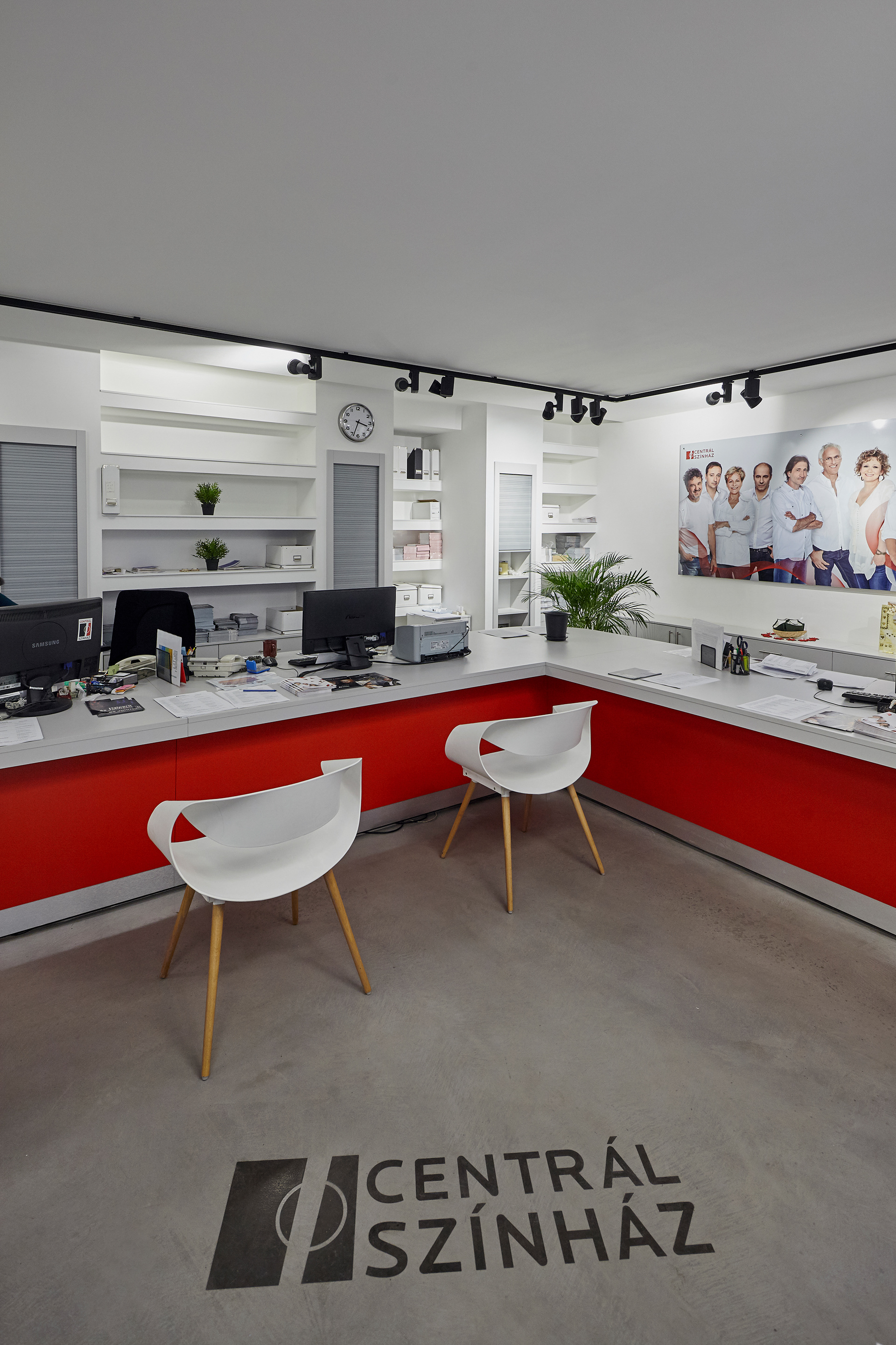 Már a Centrál a piros-fekete színű logója is egyfajta Broadway-hangulatot idéz, ennek brand-jellege pedig a belépőtér vezérmotívumául is szolgált. Nagy szükség volt radikális gondolatra, hiszen a korábbi tér az indokolatlan válaszfalaival és az álmennyezettel egy túlstrukturált és éppen ebből következően rendkívül zárt, „nyomott” hangulatot teremtett meg a látogatókban. A tervező a koncepciójában ezért arra törekedett, hogy ezt a zártságot megszüntesse, és a néző egy olyan szellős, nyitott térbe léphessen be, amelyben minőségileg jobb közérzettel tudja az előadás előtti és utáni időt eltölteni. A logó színei mindenütt visszaköszönnek az enteriőrben, e színek hatását az alapvetően indusztriális jelleg felerősíti, így ténylegesen az amerikai színjátszás központjának motívumai idéződnek fel bennünk. A fogadórész újrastrukturálása által pedig az látogatók/nézők a várakozás idejét esztétikus és racionálisan átgondolt térben, jóleső érzésekkel élik meg.